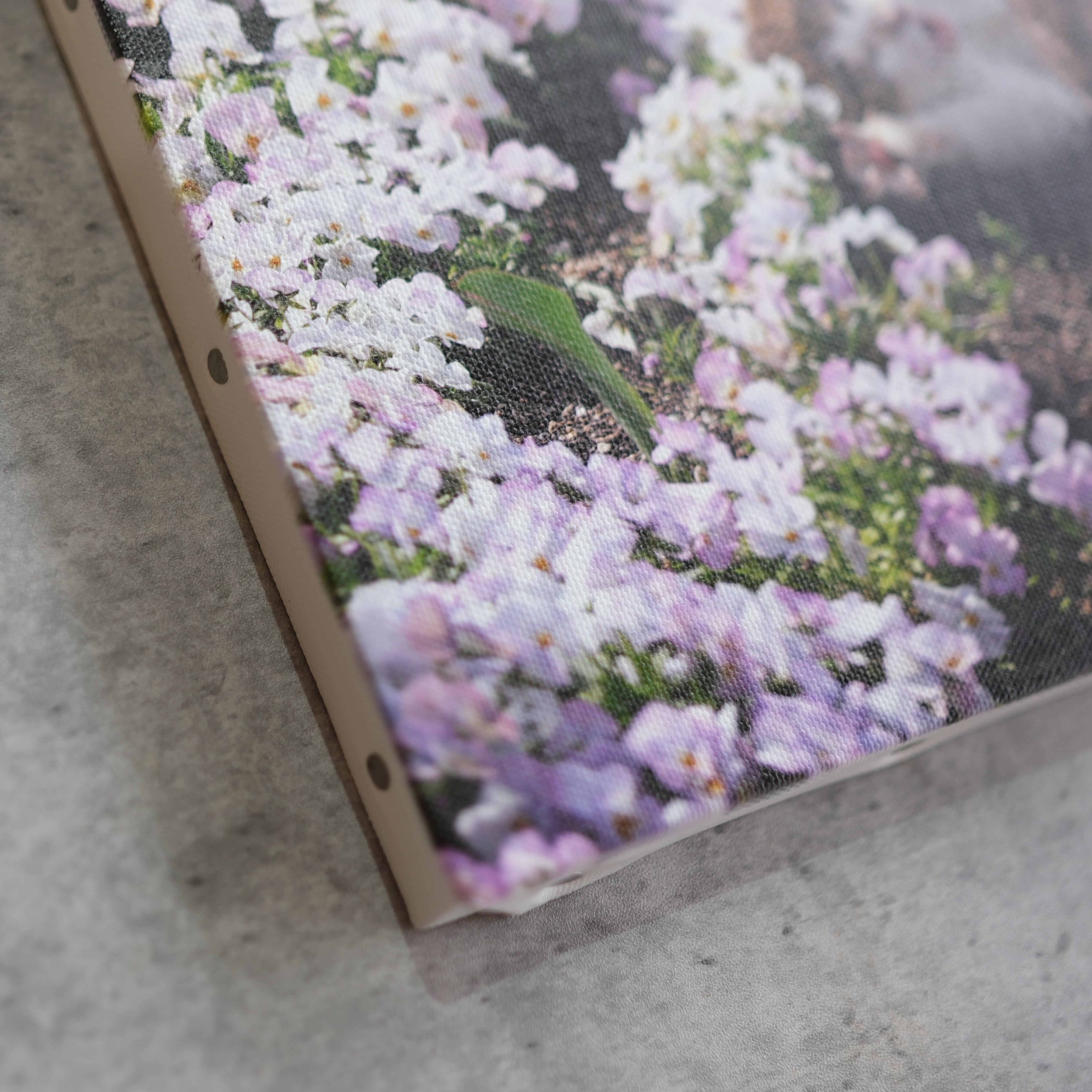 パネルはFUJIFILM 直営店 製のキャンパス生地(WALLDECOR)になっており、表面の生地のやサイドの質感が味のある仕立てになっています。