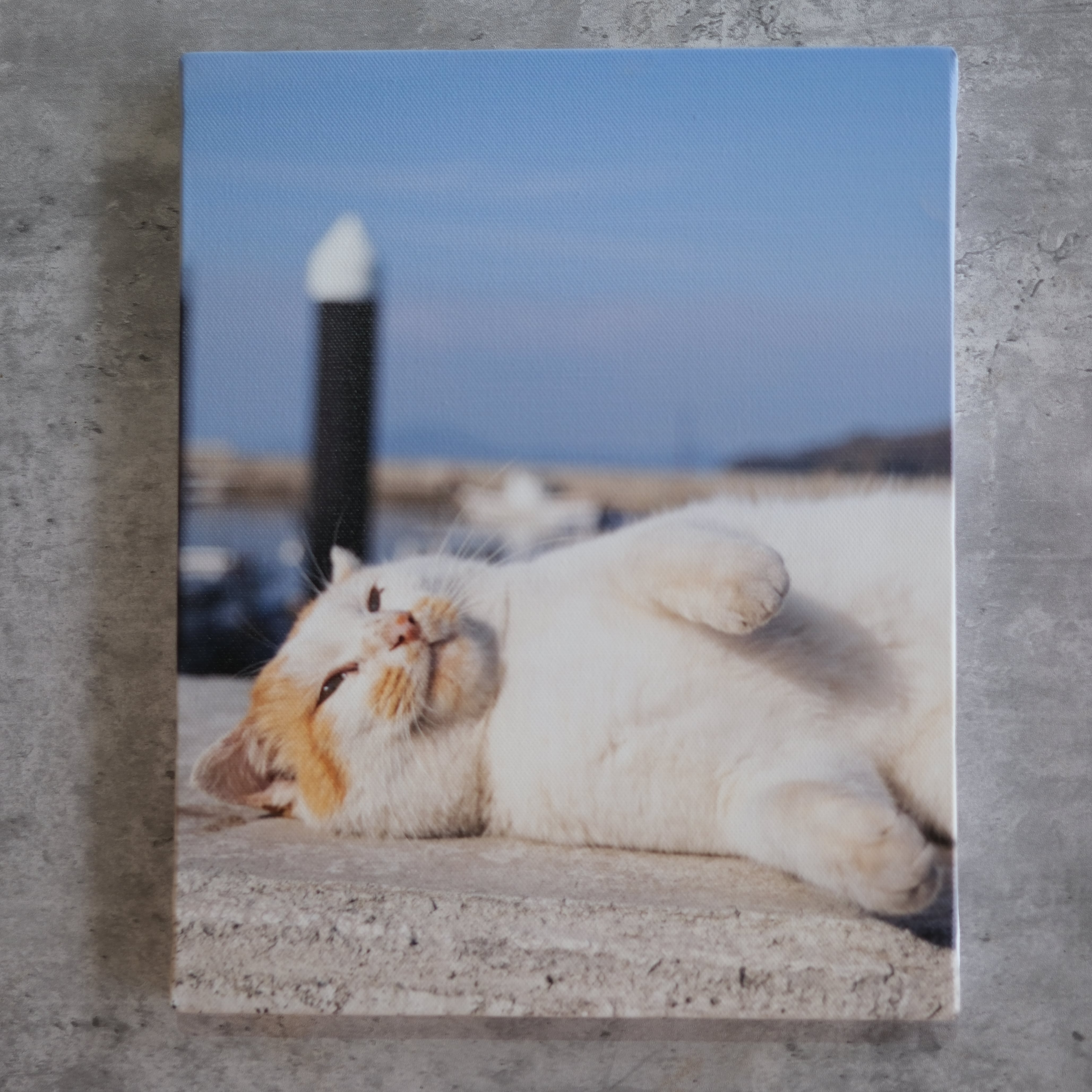 パネルはFUJIFILM 直営店 製のキャンパス生地(WALLDECOR)になっており、表面の生地のやサイドの質感が味のある仕立てになっています。