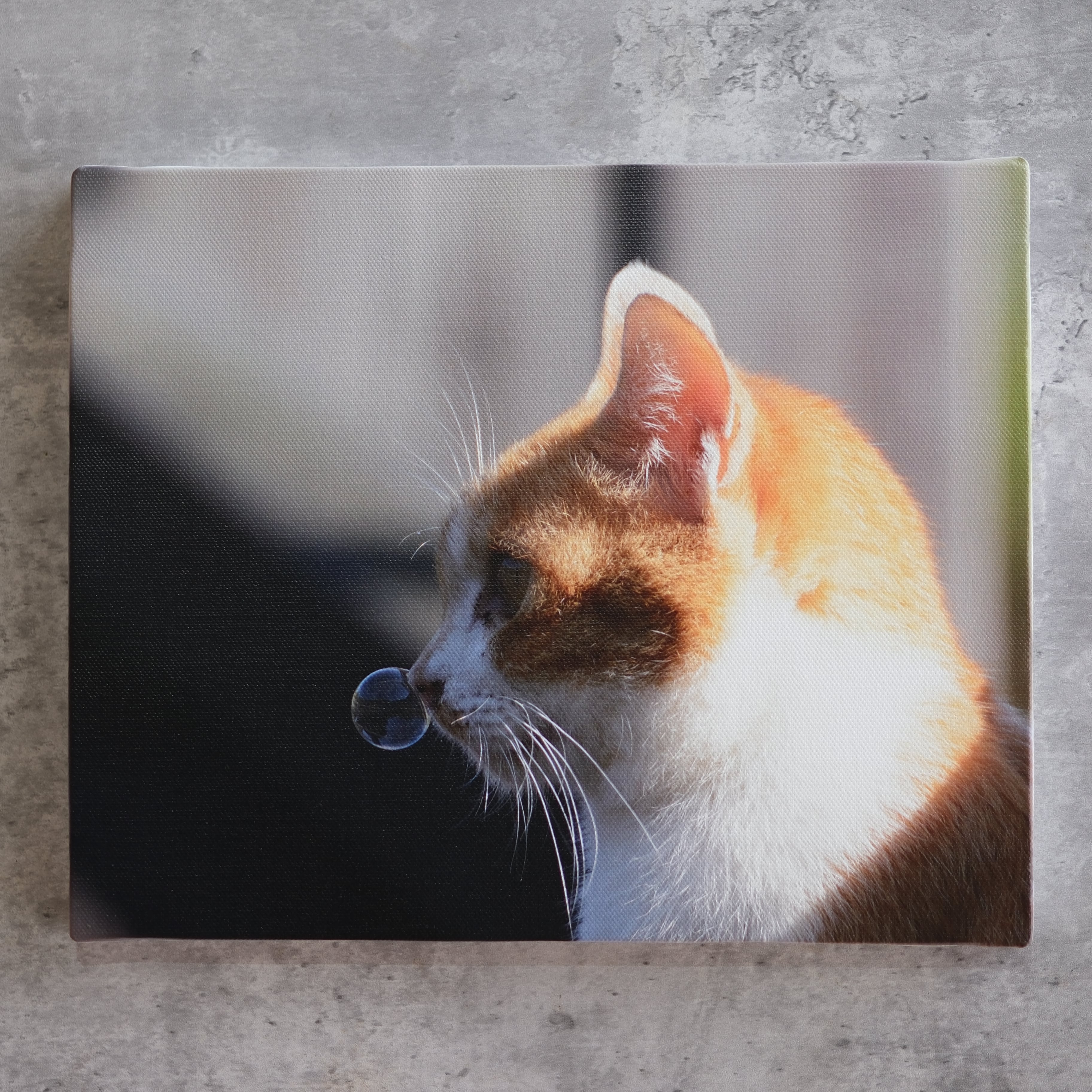 パネルはFUJIFILM 直営店 製のキャンパス生地(WALLDECOR)になっており、表面の生地のやサイドの質感が味のある仕立てになっています。