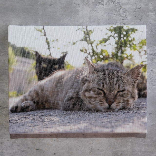 A4キャンバスパネル「砂浜のにゃんこ」(裏面に著者サイン入れ可能)